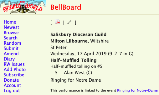 Ringing in solidarity with Notre Dame after their devastating fire - April 2019 (Pewsey)