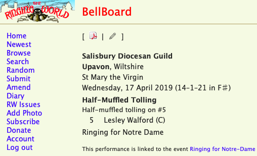 Ringing in solidarity with Notre Dame after their devastating fire - April 2019 (Upavon)