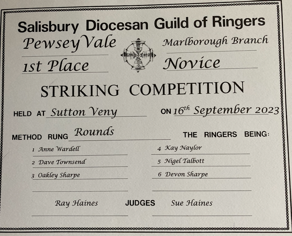 Pewsey Vale Bellringing bands take 1st and 2nd prizes in