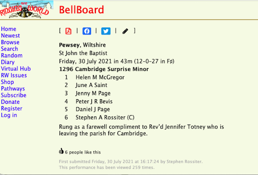 Ian Wyld's Highworth ringing outing, July 2019